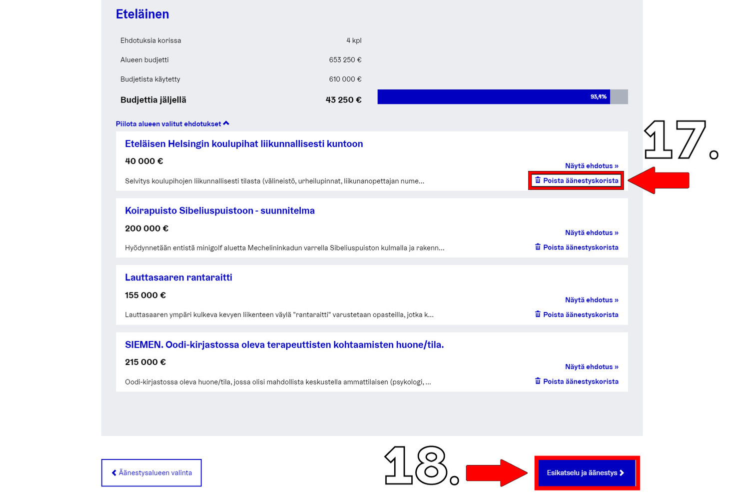 I OmaStadis omröstning valdes 75 förslag som staden ska genomföra. Du hittar information om tidsplan och genomförandet av varje förslag på OmaStadis webbplats för uppföljning.