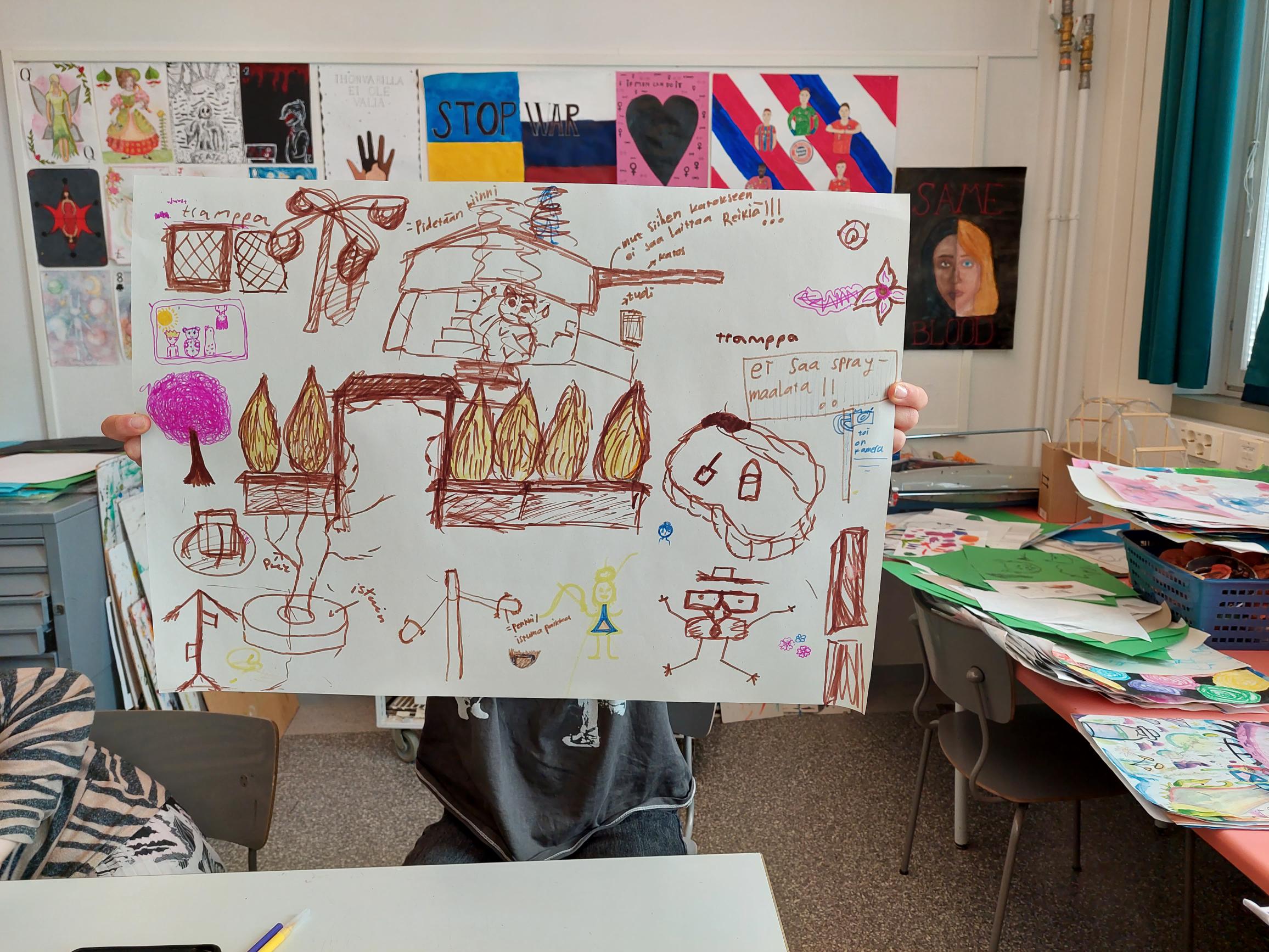 Porolahden koulun taideluokka, koululaisten kanssa työpaja
